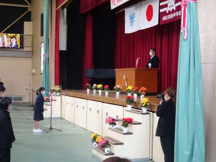 新入生代表 誓いの言葉では「仲間を思いやり,勉強や部活動を精一杯楽しめるよう頑張ります」と決意が述べられました。