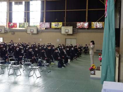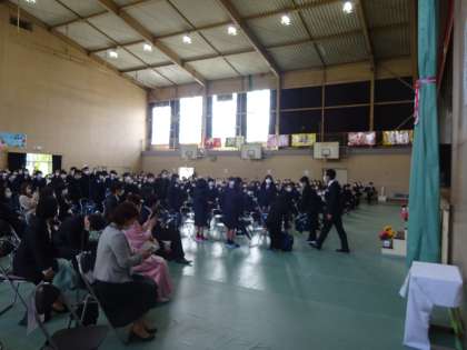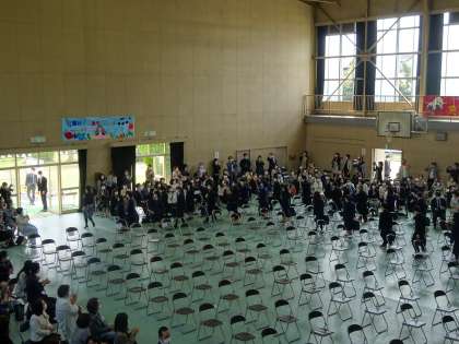 担任の先生を先頭に退場します。この後,各教室にて短学活が行われます。