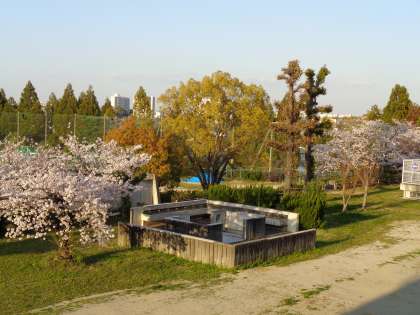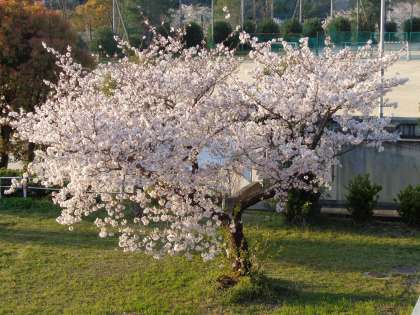 1年生の教室のある東棟の廊下からはサクラを眺めることができます。
