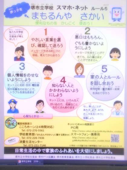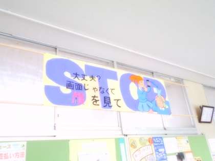 子どもたちを待っています3 公開日 2020/04/10 更新日 2020/04/10 学校 毎年,堺市の生徒会では「ネットいじめ防止」の標語を作成しています。本校の生徒会役員がイラストで表現し「画面を見ないで,顔を見て」と赤中生に呼びかけています。 この標語を掲示できるように技術職員さんが工夫してくださいました。 家にいる時間が長くなっていますが,ご家庭でルールを決めて規則正しい生活を心がけてください。