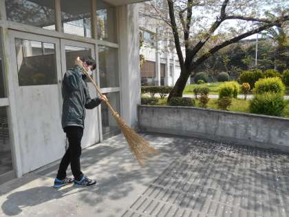 校内の清掃を行っています。来週,教科書・学習課題等の配布へのご協力をよろしくお願いいたします。