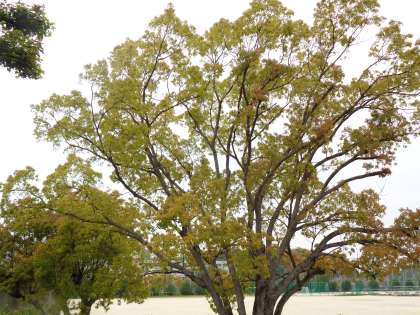大阪の気候によく合っているのか大きなクスノキが府内にはたくさんあります。本校にもたくさん植わっていて,開校時に植えられたものも大きく育っています。