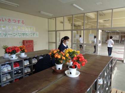 写真右・3年生になって技術科の授業はきょうが最初なので,年間の予定を含め,これからの学習のこと,評価のことの説明を受けました。