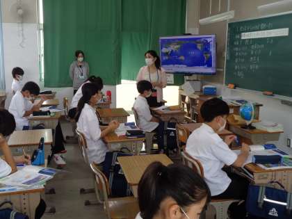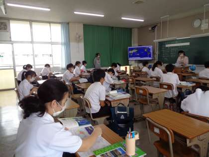 世界地図をざっと見て,大陸の位置と名前,大きな海の広がりとその名前などを覚えました。