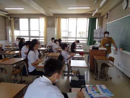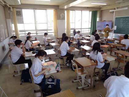先生の大きな声に合わせ,生徒たちも大きな声で読んでいました。