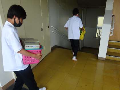 来週から全員そろっての学校生活が再開します。1年生にとって,やっと中学校生活のスタートですね。まだ,委員や係などが決まっていませんが,お手伝いをすすんでやってくれる頼もしい1年生です。