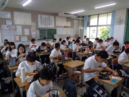 中学校入学後,1年生にとって,今週から初めてみんなといっしょに昼食をいただきました。