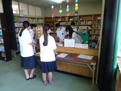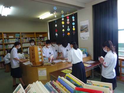 図書委員が決まり,さっそく今日から本の貸し出し作業をしてくれました。