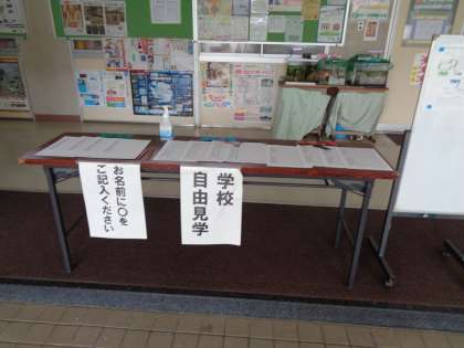 今週いっぱい,3日(金)まで学校見学期間です。ご都合のいい時間帯に見学なさってください。(恐れ入りますが,最初に職員室前までおいでくださるようお願いします。)