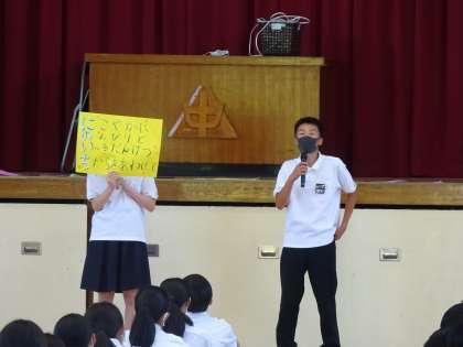 2日(木)の6時間め,2年生は学年集会を開きました。みんなで考えた学年目標,クラス目標を発表し,みんなで共有します。いっそうすばらしい学年,クラスとなるよう,みんなで気持ちと力を合わせましょう。