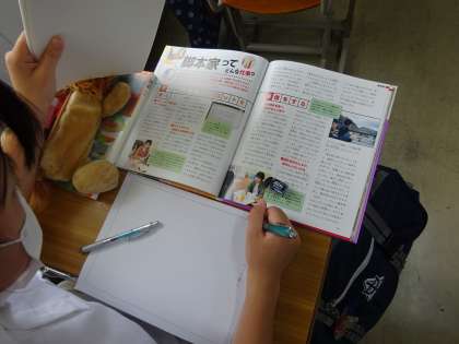 国語では,図書室にある本などを使って職業調べをしています。清書をしたら,発表を行います。