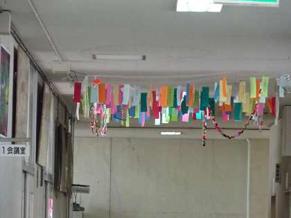 今日は七夕。あいにくのお天気ですが,みんなの願いが届くといいですね。