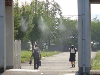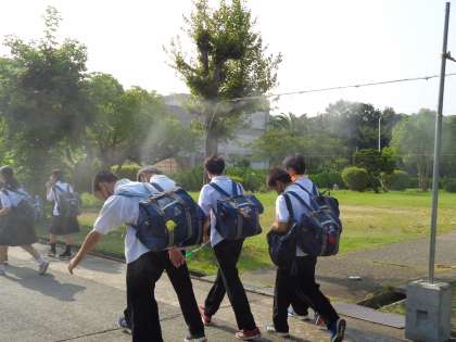 暑さが厳しいなか,生徒たちが「がんばって」登校してきました。