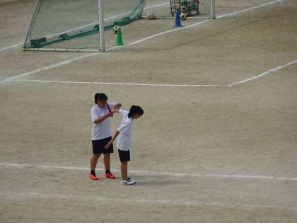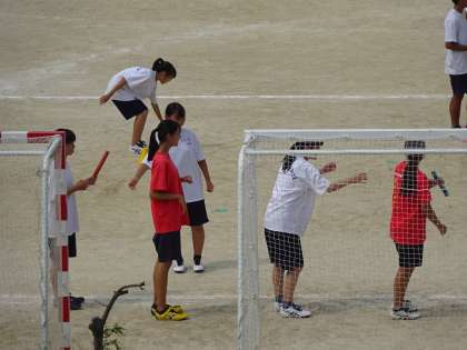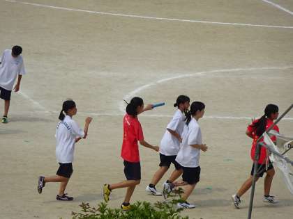陸上部では,チームを作ってリレーバトンの練習をしています。
