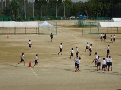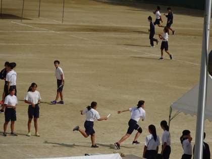 陸上競技が行われています。明日の体育大会で,バトン練習の成果が出るといいですね。