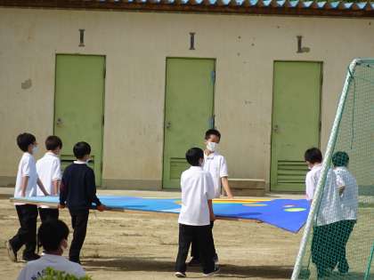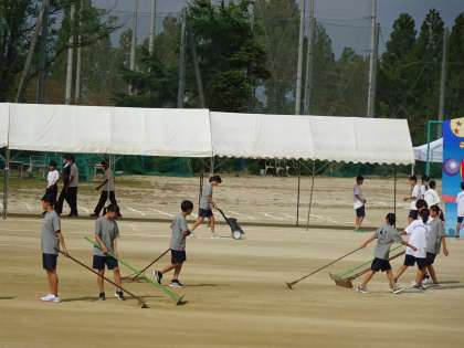 各種委員,部活動の生徒たちが,明日の体育大会の準備をしています。
