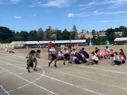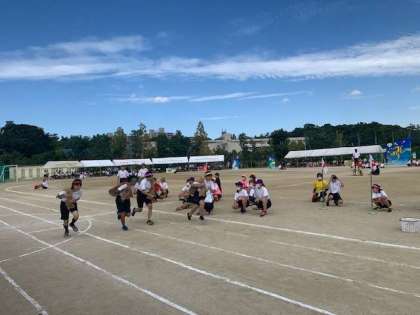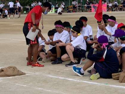 リレー種目は、出発前に消毒をしてからスタートします。