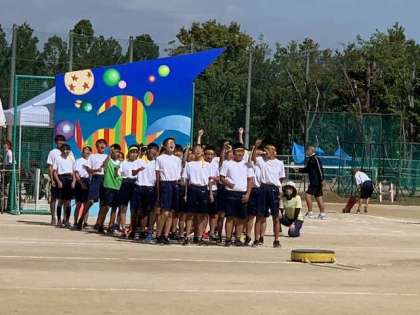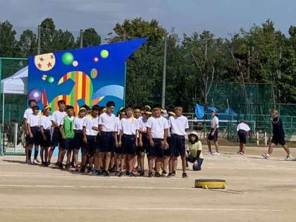 2年生学年種目「ベン・ハー」です。出発前に各クラスが気合を入れます。