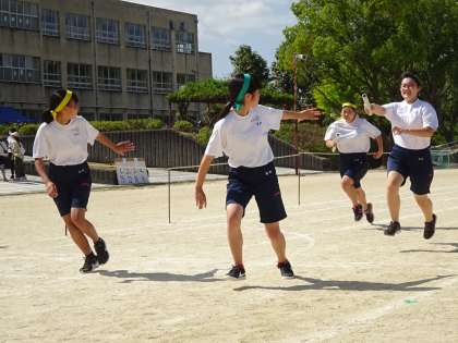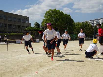 午前中最後のプログラム「総力リレー」では,応援も一層盛り上がります。