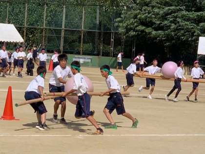 1年生学年種目「大玉みこし」では、番狂わせもあり、大盛り上がりでした。