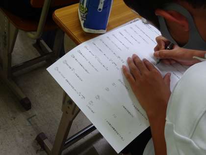 国語では,古文「徒然草」を学習をしています。数学では少人数授業が行われています。