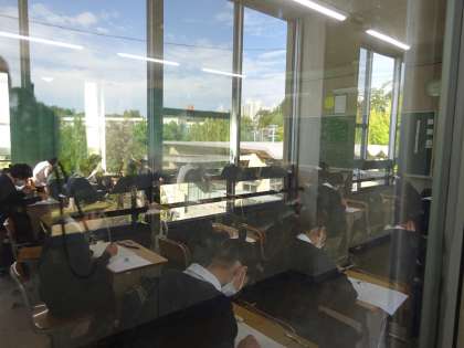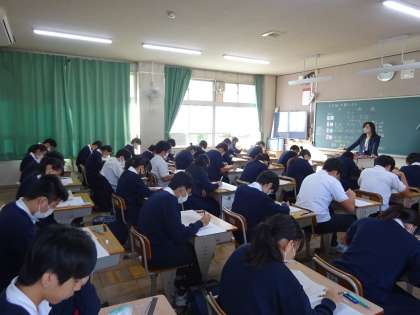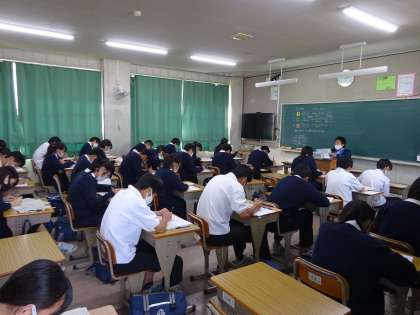 今日はこの後、社会のテスト、そして、3年生は音楽のテスト、1・2年生は美術のテストがあります。