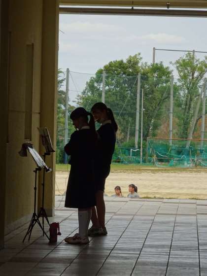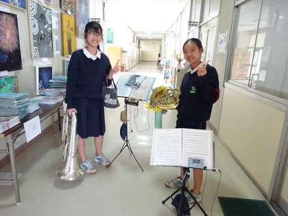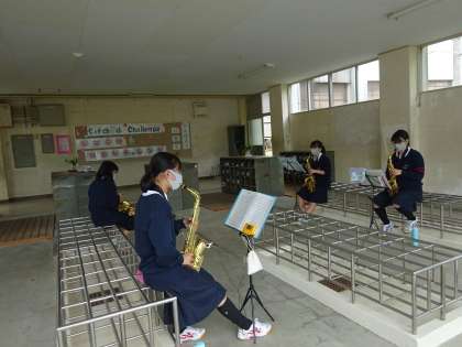 文化活動発表会に向けて,各パートごとに場所を探して練習しています。