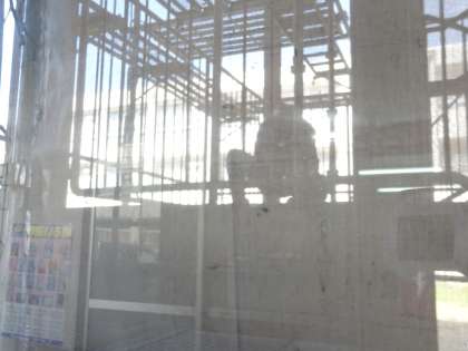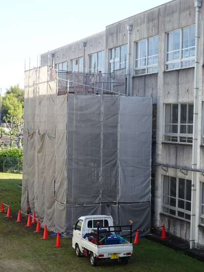 南2棟の外側の非常階段の補修工事をしています。