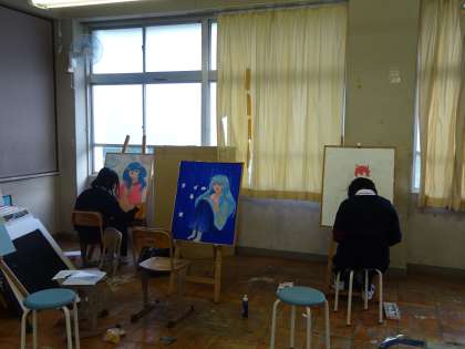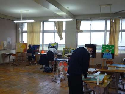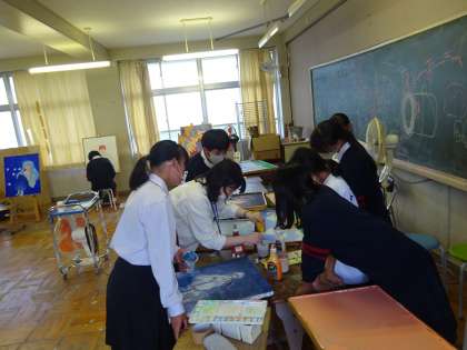 美術部の先生が,色の作り方を指導しています。