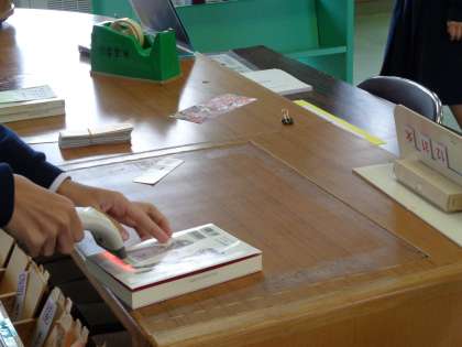 バーコードリーダーを使って,貸し出しや返却の際もスムーズに。