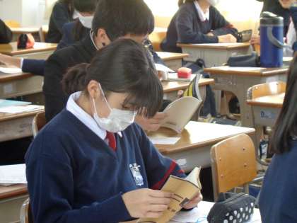 朝の短学活の時間まで,静かに本を読んで待つ生徒たちが多いです。