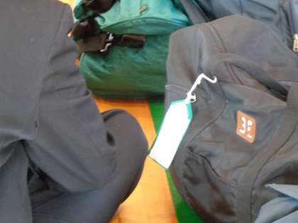 大きいほうの荷物にはタグ(荷札)を付けました。クラスごとに色が異なります。