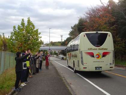 たくさんの先生方が,出発を見送ってくれています。