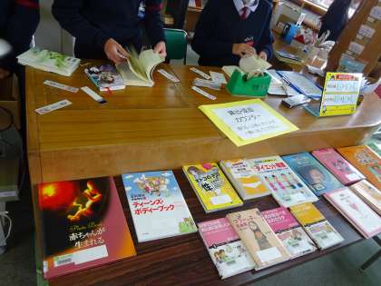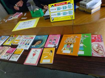 さっそく1年生「いのちの授業」に関連する本を並べてくれています。
