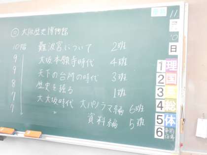 明日の「キッザニア,大阪歴史博物館」の校外学習に向けて,体験する順番等をしおりを見ながら決めています。