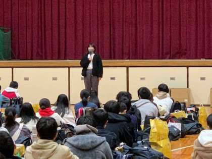校長先生からは元気に無事帰って来れてよかったです。この仲間と過ごした2日間を良い思い出として心に残してください。と話がありました。生徒代表からは、良い思い出ができました。後少しの学校生活も楽しみましょう。とありました。