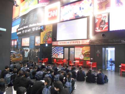 イングリッシュビレッジでは,アメリカの街並みを再現したスタジオで,すべて英語でコミュニケーションをとります。