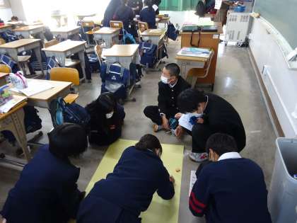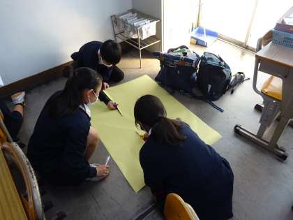 昨日実施した校外学習で学んだことを新聞にします。読みてに分かりやすい新聞になるように,班ごとに工夫をして制作していきます。