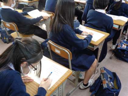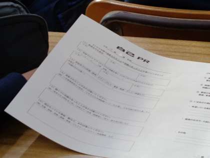 月曜日・火曜日に出かけた修学旅行をこの時間の前半で振り返ったかと思えば,そのあと,早速に進路関係の自分に関する資料を書きはじめました。