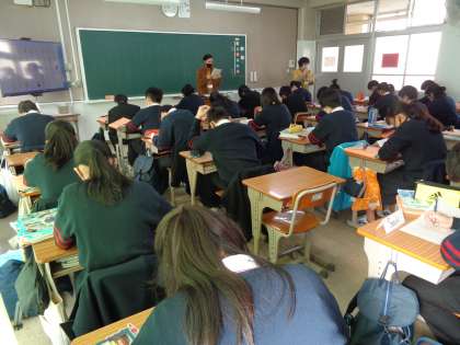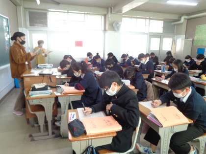 3学期からの新しいNS(ネイティヴスピーカ)の先生は,きょうは2年生の授業にもかかわっています。