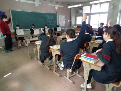 こちらの教室ではクイズ形式で授業を進めていました。