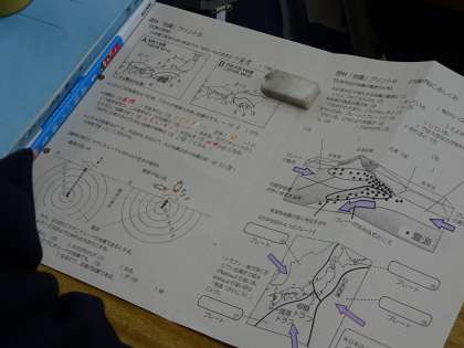 理科では,地震について学習しています。最近よく,日本各地の地震ニュースが速報で流れます。学習することで,南海トラフ地震が私たちの身近に迫っていることがわかります。