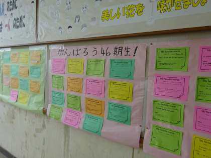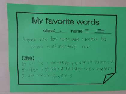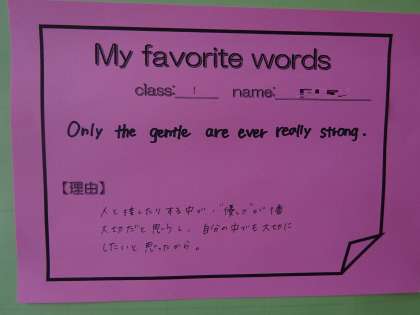 英語に時間に学習した「My favorite words」が3年生昇降口辺りに掲示されています。卒業を前に,それぞれの心に響く言葉が紹介されています。