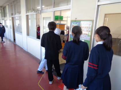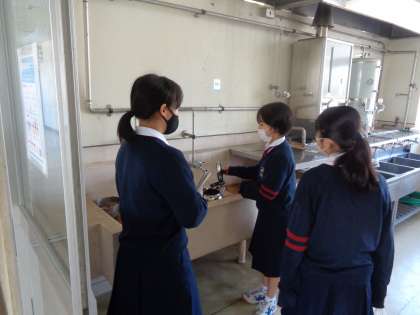 給食利用の人は容器を配膳室に返します。(左・中)