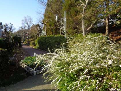 この時期にニュータウンを訪れる人には,電車に乗っている人も,クルマで来る人も,線路や道路沿いに植えられた白いユキヤナギに気づいて「きれいだな。」と思う人もいるのだとか。