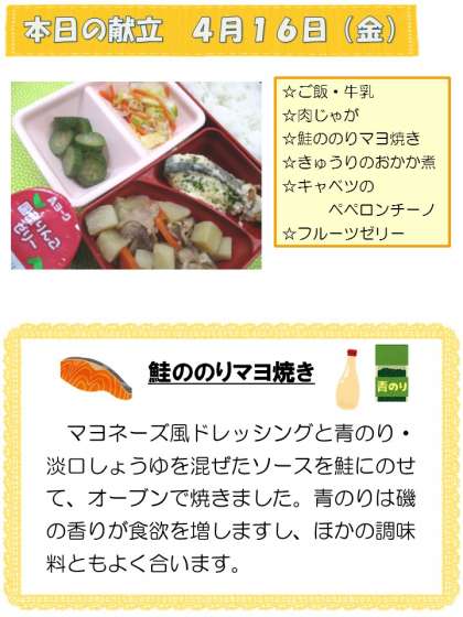 お肉,お魚,野菜のバランスのいい献立です。おいしくいただきましょう。