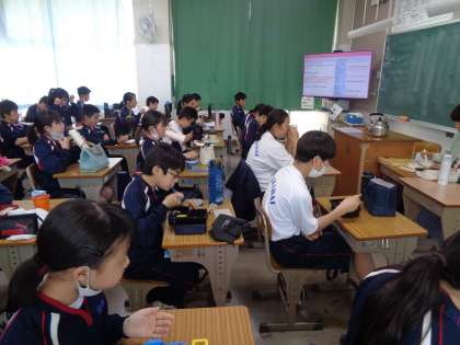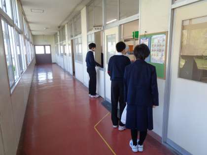 給食利用の人は,昼食後に容器を配膳室まで返しに来ます。配膳室の中が混んでいるときは廊下で並んで待ちます。