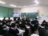 英語の授業です。小学校時代に教わったことをさらに進めての学習です。家に帰って授業で教わったことの見直しもしっかりしておきましょう。