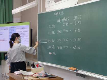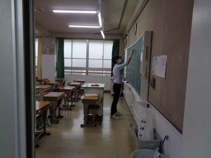 各クラスの担任の先生は教室を整えて,また,黒板には教科ごとの開始・終了の時刻を書いていました。
