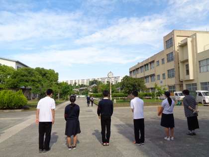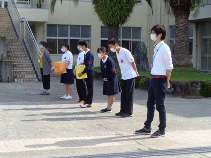 生徒会役員の人たちもエコキャップ回収運動の呼びかけ,あいさつの声かけに朝から励んでくれました。